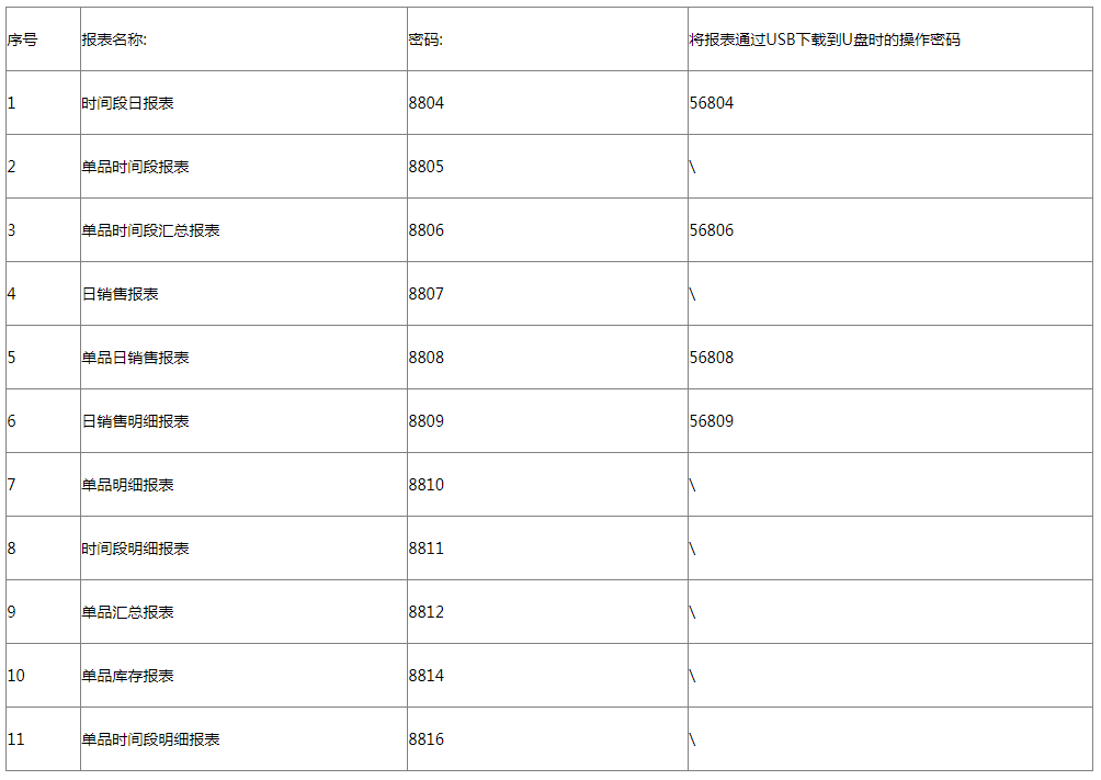 单品时间段报表密码为“8805”