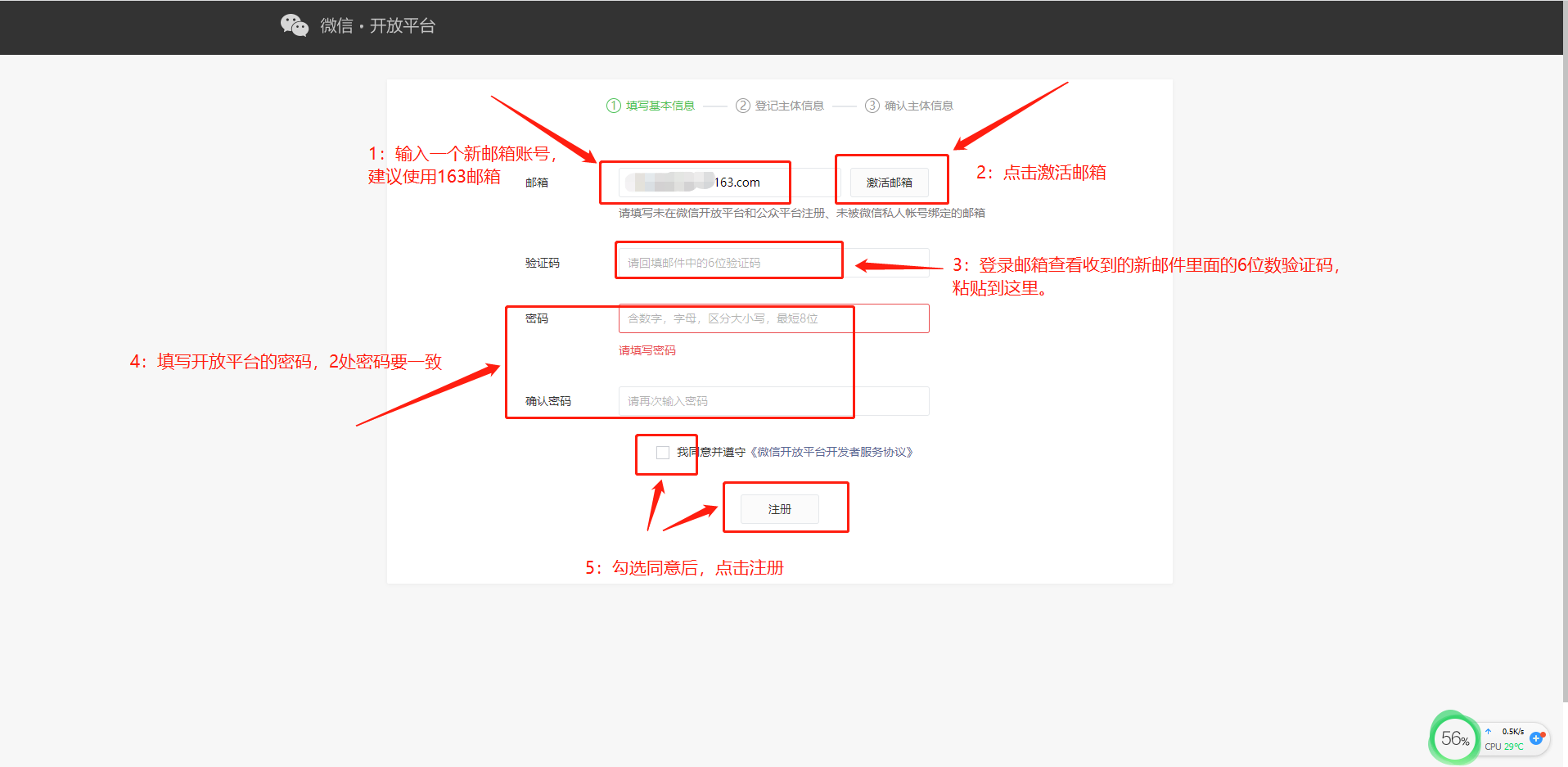 第二步:填写相关信息,邮箱、密码等,登录邮箱激活账号
